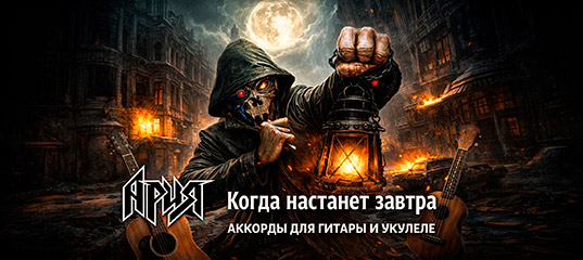 Intro: Em | B7sus4/F# G6 | Am } ×4 Em B7sus4/F# G6 Здесь лишь эхо прошлых дней, Am Em Нет праздничных огней, B7sus4/F# G6 Am B Часов замедлен ход. Em B7sus4/F# G6 Дождь, льёт бесконечный дождь, Am Em И город стал похож B7sus4/F# G6 Am B На затонувший флот. Cadd9 Здесь крадётся за мной Em7 Em Одиночества холод. Cadd9 Равнодушной волной B7 F#m5-/C B Гонит прочь мёртвый город. Припев: Em C Когда настанет завтра, G B7 Всё окажется сном, Em C И дождь, за каплей капля, G A B Исчезнет в нём. Em C Мы – слёзы в океане G B7 В этой жизни земной, Em C Когда настанет завтра, G A B Em Я вновь буду с тобой! Проигрыш: Em | B7sus4/F# G6 | Am } ×4 Em B7sus4/F# G6 Звон, по ком так плачет он? Am Em По тем, кто не прощён, B7sus4/F# G6 Am B И не сумел простить. Em B7sus4/F# G6 Где в тумане спрятан свет? Am Em Никто не даст ответ, B7sus4/F# G6 Am B И нет конца пути. C Я остался один, Em Повинуясь теченью. C Вольным ветром гоним B C B Вглубь других измерений. Припев: Em C Когда настанет завтра, G B7 Всё окажется сном, Em C И дождь, за каплей капля, G A B Исчезнет в нём. Em C Мы – слёзы в океане G B7 В этой жизни земной, Em C Когда настанет завтра, G A B7 C#m Я вновь буду с тобой! Проигрыш: C#m | C#m | G#m | G#m A | A | C#m | C#m E | E | B B6 | B F#m | F#m/A F#m/G# F#m F#m/E C#m | C#m C#m | C#m | G#m | G#m F#m | F#madd9 | C#m | C#m E | E | B | B F#m | F#m/A F#m/G# F#m F#m/E C#m | C#m Бридж: A День представь как чистый лист, C#m Где бури нет – лишь лёгкий бриз, A G# И словно перья птицы облака. A А память превращает боль C#m В крик альбатроса над волной, A B Он путь укажет к новым берегам. Припев: Em C Когда настанет завтра, G B7 Всё окажется сном, Em C И дождь, за каплей капля, G A B Исчезнет в нём. Em C Мы – слёзы в океане G B7 В этой жизни земной, Em C Когда настанет завтра, G A B Em Я вновь буду с тобой! Em C Когда настанет завтра, G B7 Всё окажется сном, Em C И дождь, за каплей капля, G A B Исчезнет в нём. Em C Мы – слёзы в океане G B7 В этой жизни земной, Em C Когда настанет завтра, G A B C Я вновь буду с тобой! Кода: C | D | Em Emadd9