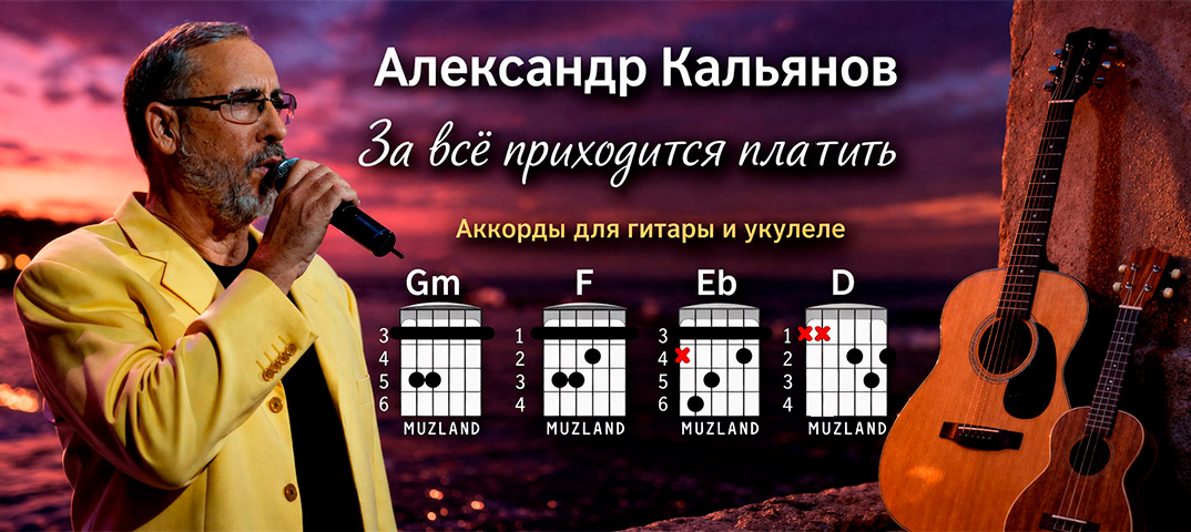 Intro: Gm | F | Eb | Dsus4 D Eb/G | F6add9 | Eb | D7 Gm Gm/Bb Am75- За то, что хочешь есть и пить, D7 Cm7 Иметь свой хлеб и чашку чая, Cm7/Bb Ab Чем Бог послал друзей встречая, D9- D7 За всё приходится платить. Gm Gm/Bb Am75- За то, что хочешь пошутить, D7 Не замирая от испуга, G7 G7/B Cm Косясь с опаскою на друга, A7 D7 Am7/E D7/F# За всё приходится платить. Gm Bb+/F# Gm/F За то, что хочешь быть собой, Eb F Собою быть, а не казаться, Dm Eb Gm/D Не унижать, не унижаться – Cm Cm7/Bb Am75- Платить приходится судьбой. Cm D7 D7/F# Платить приходится… Проигрыш: Gm | F | Eb | Dsus4 D Eb/G | F6add9 | Eb | D7 Gm Gm/Bb Am75- За то, что хочешь полюбить D7 Без вычислений и расчёта, Cm7 Cm7/Bb Не став героем анекдота, Ab D9- D7 За всё приходится платить. Gm Gm/Bb За то, что хочешь просто жить Am75- D9- Без разносолов и амбиций, G7 G7/B Cm Не выделяться, не стремиться, A7 D7 Am7/E D7/F# За всё приходится платить. Gm Bb+/F# Gm/F За то, что хочешь быть собой, Eb F Собою быть, а не казаться, Dm Eb Gm/D Не унижать, не унижаться – Cm Cm7/Bb Am75- Платить приходится судьбой. Cm D7 D7/F# Gm Платить приходится судьбой. Проигрыш: Gm Gm Gm/A Gm/Bb | Fm | Fm/Ab | Gm7 | C7 Bbm7 | Bbm7/Ab Eb/G Eb9/G | Ab Ab/Bb Ab/C Db | Db/C Am75- | D7 Am7/E D7/F# Gm Bb+/F# Gm/F За то, что хочешь быть собой, Eb F Собою быть, а не казаться, Dm Eb Gm/D Не унижать, не унижаться – Cm Cm7/Bb Am75- Платить приходится судьбой. Cm D7 Платить приходится D7/F# Gm Судьбой. Кода: Gm | Gm/Bb | Am75- | D7 Gm Gmadd9 | Gm